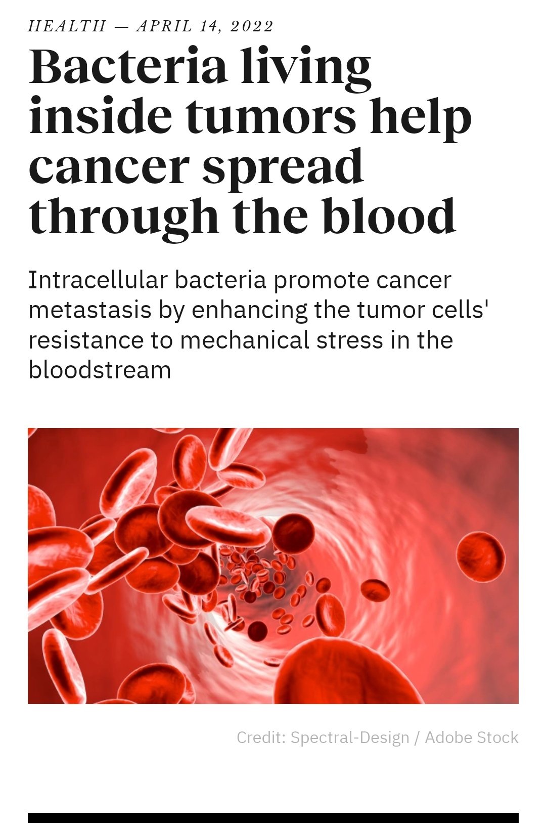 Cancer cells with intracellular bacteria makes them hardier to be able to survive in the blood stream and sadly more easy for them to Metastasize to other tissue.